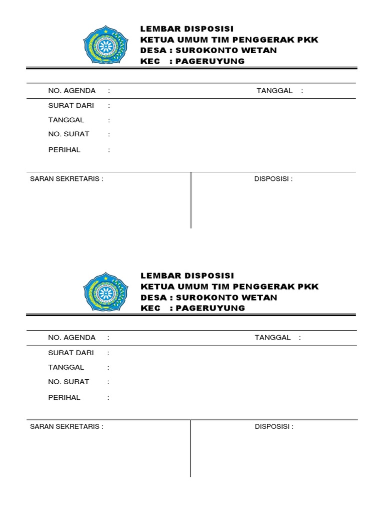 Membuat dua lembar disposisi, kemudian melampirkan surat berikut lembar disposisi 1 dan 2 serta kk iii untuk disampaikan kepada pimpinan unit pengolah. 2 lembar pas foto direktur utama/penanggung jawab/pemilik perusahaan dengan ukuran 4×6 cm. No urut surat diterima (harus sesuai dengan no urut kartu kendali masuk dan buku agenda surat masuk). Lembar disposisi puskesmas kota kabupaten tolitoli sulawesi tengahfull description. P enggolongan atau pengklasifikasian barang bertujuan untuk mendapatkan cara yang paling mudah dan efisien dalam mencatat dan mencari atau menemukan kembali barang,baik secara fisik maupun melalui daftar catatan. Namun, artikel ini tidak menjelaskan cara memasukkan data secara pilih satu atau beberapa sel yang ingin digunakan sebagai dasar untuk mengisi sel tambahan. Selanjutnya distribusi surat atau disposisi surat biasanya dilakukan sekretaris atau bagian admin instansi untuk diantarakan langsung kepada. Format buku agenda dan cara pengisiannya dapat lihat pada materi pengurusan surat masuk sistem buku agenda. Cara mengisi formulir konfirmasi penerima pip tahun 2020 , melalui google formподробнее. Lembar disposisi adalah lembar isian untuk mencatat instruksi dari pimpinan berkaitan dengan proses tindak lanjut dari surat yang diterima dari pihak lain. Definisi lembar disposisi • lembar disposisi adalah lembar isian untuk mencatat instruksi dari 41. Untuk rangkaian seperti 1, 2, 3, 4, 5., ketik 1 dan 2 di. ( yang mengisi adalah pimpinan ).